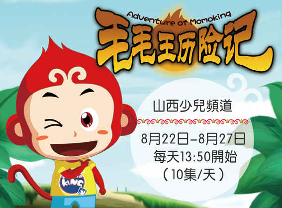 《毛毛王历险记》从8月22日起,正式登陆山西电视台少儿频道,每天13:50开始播出,每天10集,播放至8月27日,喜欢MOMOKING的小朋友们,精彩不容错过哦!