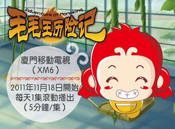 大型原创系列动画片《毛毛王历险记》将从11月18日开始在厦门移动电视XM6与大家见面,每天1集滚动播出(5分钟/集),这是继上个月12首主题曲MV滚动播放后,广大MO友们又能够在移动公交见到MOMOKING和他可爱的伙伴们。厦门移动电视现已形成包含BRT公交、公共服务窗口、LED大屏幕、中国移动3G、移动多媒体广播(CMMB)的五大播出平台,终端覆盖BRT、普通公交、政府机构、高端写字楼、住宅楼、机场、火车站、码头、银行、广场等,每天收视人群超过250万。接下来的许多日子里,大家都可以随时随地看《毛毛王历险记》,一起来编织美丽的西游童话吧!